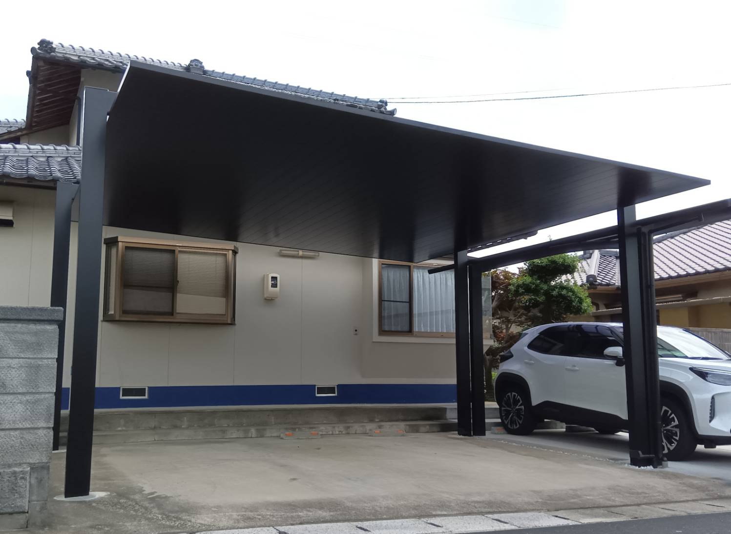 田舎ではかかせない移動手段で乗る車を守りつつも、見た目はかっこいいカーポート.