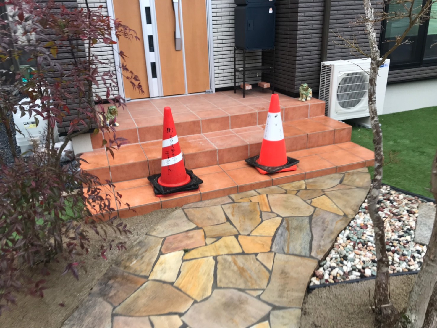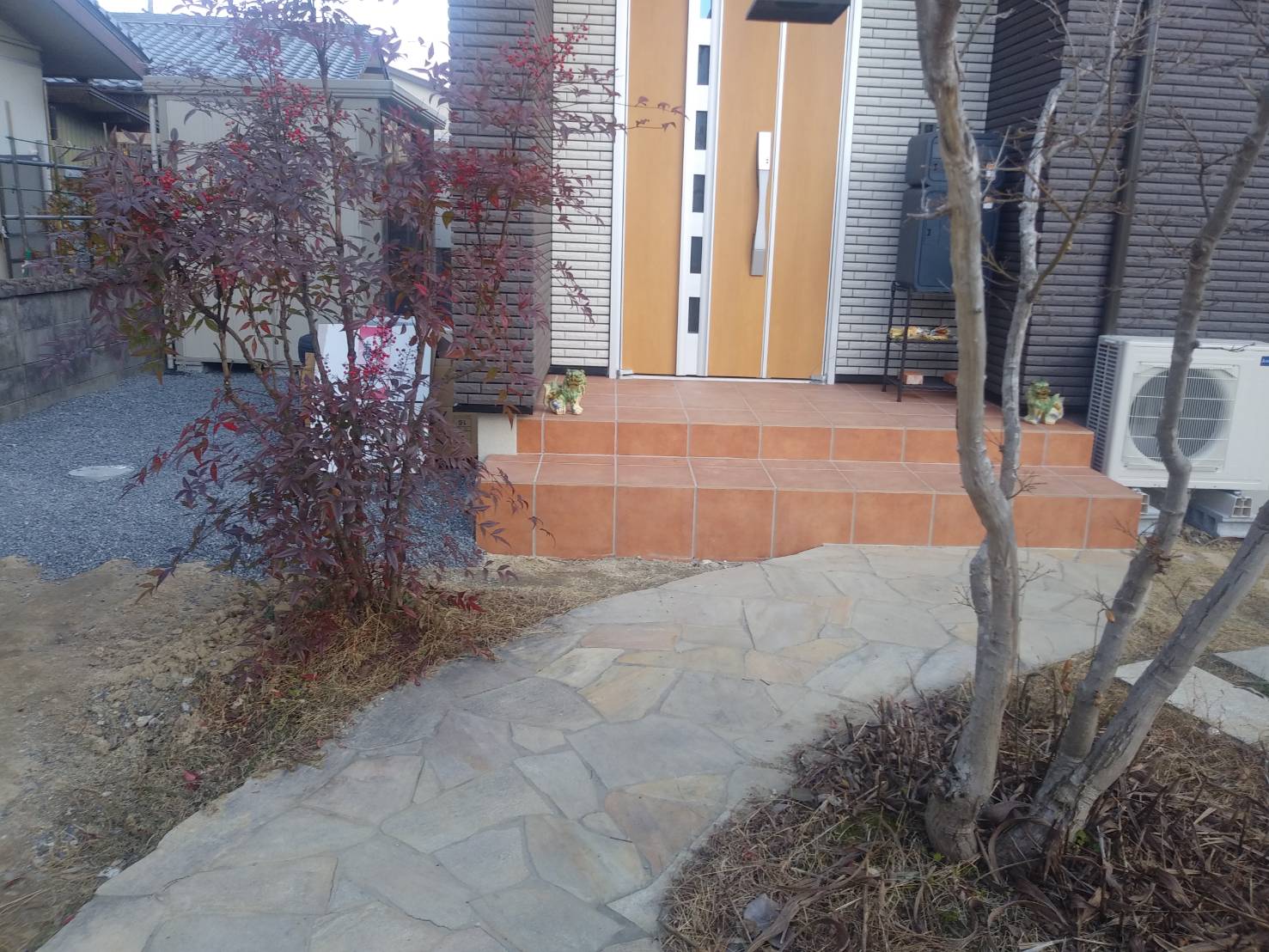 玄関1段造作+アプローチタイル貼り