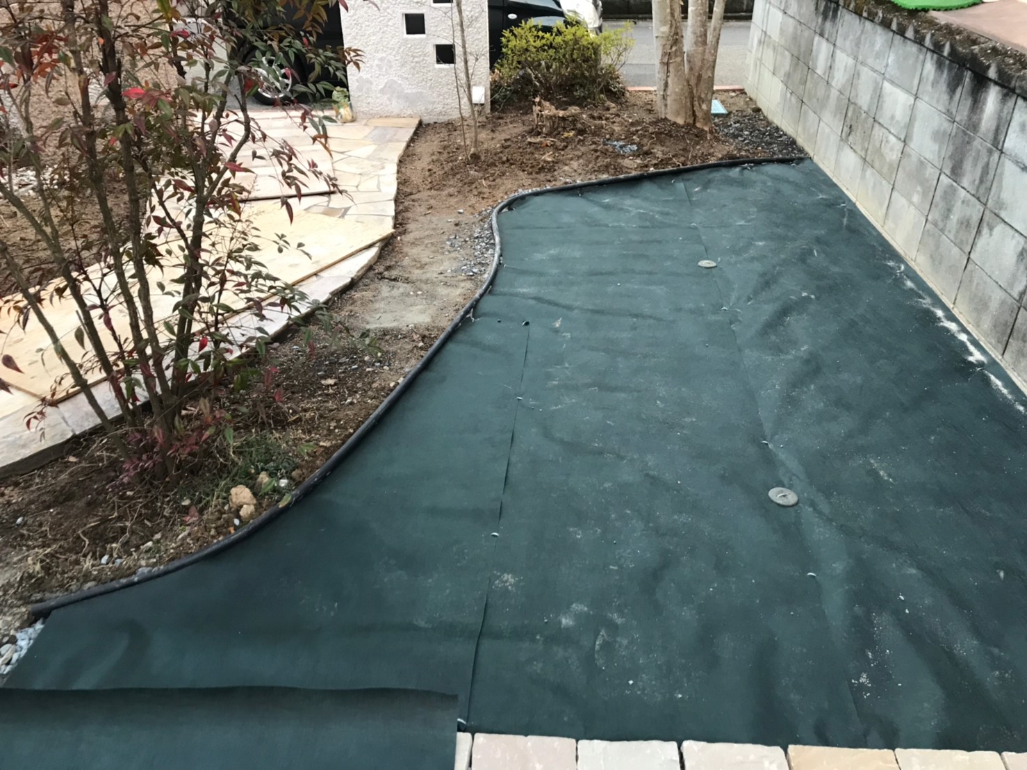 見切りブロック+防草シート敷き