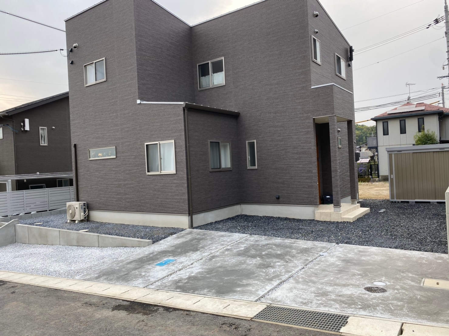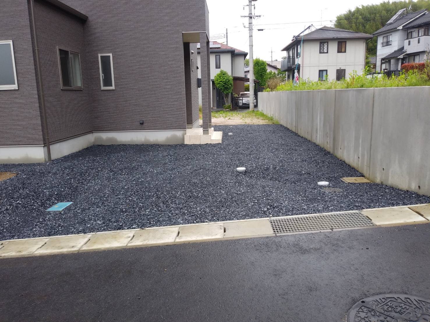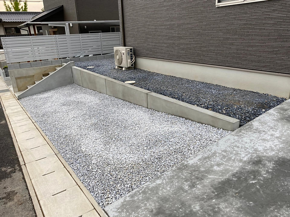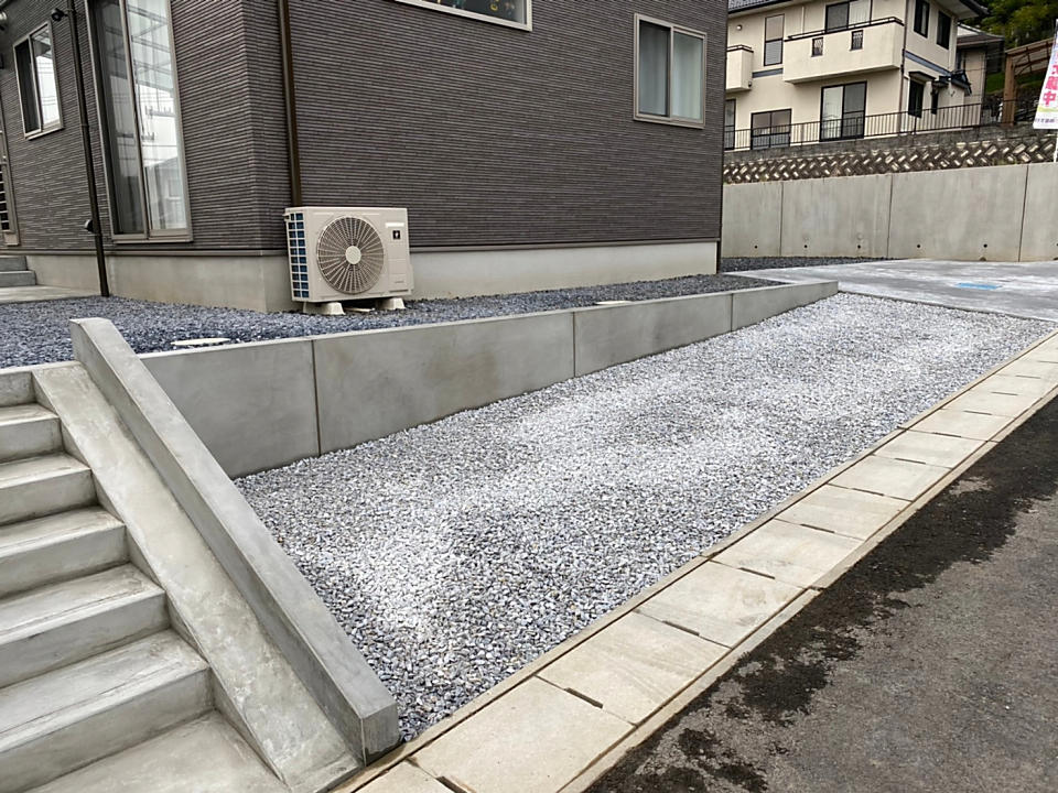 土間コンクリート・石灰石敷き
