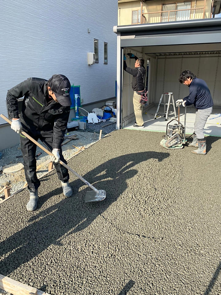 ガレージとドライテック(透水性コンクリート)
