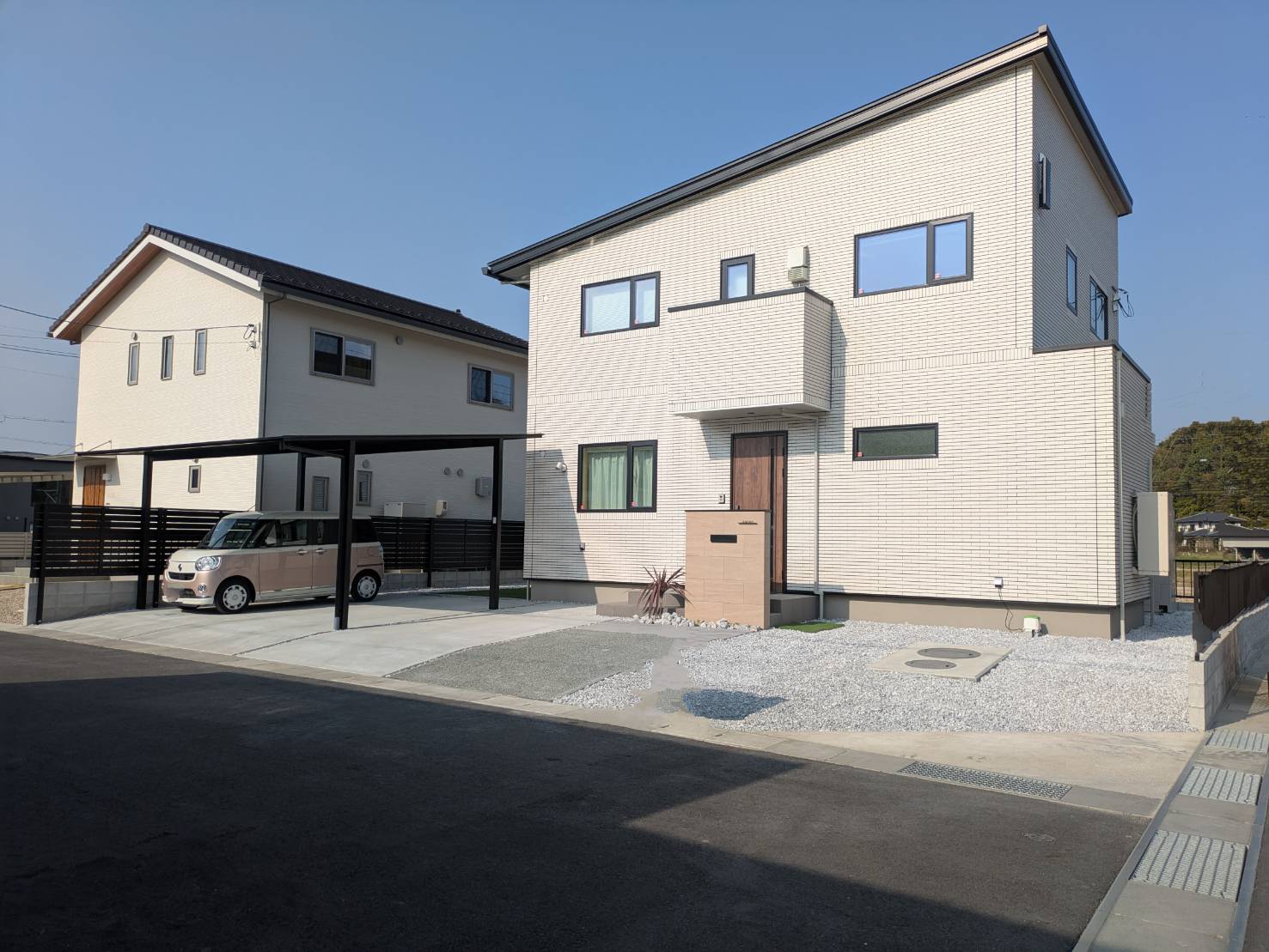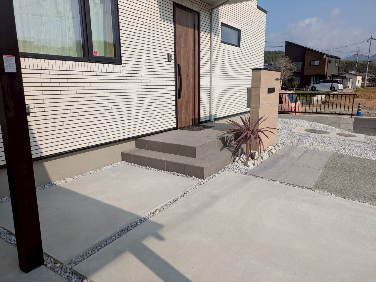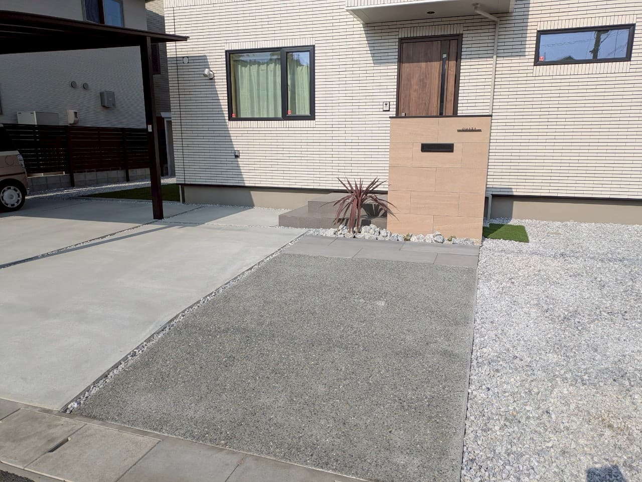 オープン外構は全体が見えるため、 地面をコーディネート+:❀ 明るく見せたり、落ち着いた雰囲気に見せたりする事ができます・*。✧